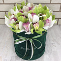 Букет №1030 «Белые и зеленые орхидеи в коробке»