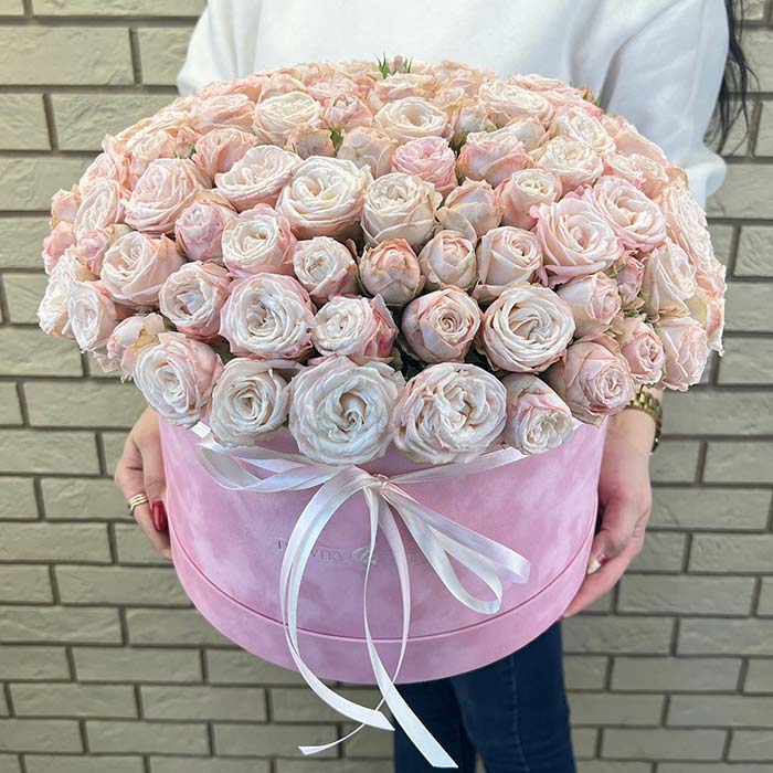 Букет №1247 «Розовые пионовидные розы в коробке»