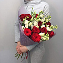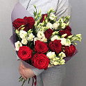 Букет №1340 «Красные розы и эустомы»