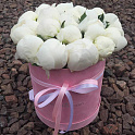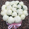Букет №1351 «19 белых пионов в бархатной коробке»