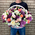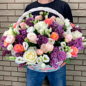 Букет №2097 «Корзинка из сирени, эустомы и роз»