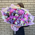 Букет №2125 «Гортензии, кустовые розы, маттиола и эустома»