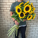 Букет №2203 «Подсолнухи с атласной лентой»