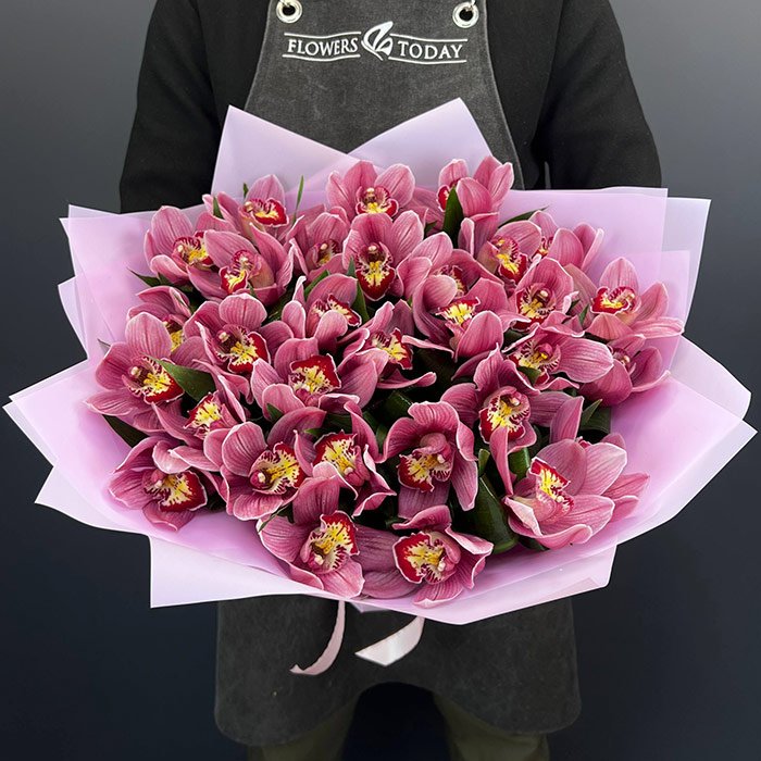 Букет №2282 «Розовые орхидеи с зеленью»