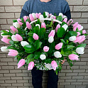 Букет №2400 «101 тюльпан с зеленью в корзине»