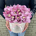 Букет №2530 «Розовые орхидеи в бархатной коробке»