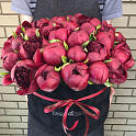 Букет №2760 «39 красных пионов в черной бархатной коробке»