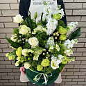 Букет №6986 «Мужская композиция из роз, маттиолы и экзотики»
