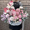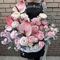 Букет №7394 «Ранункулюсы, маттиолы, антуриумы, розы»