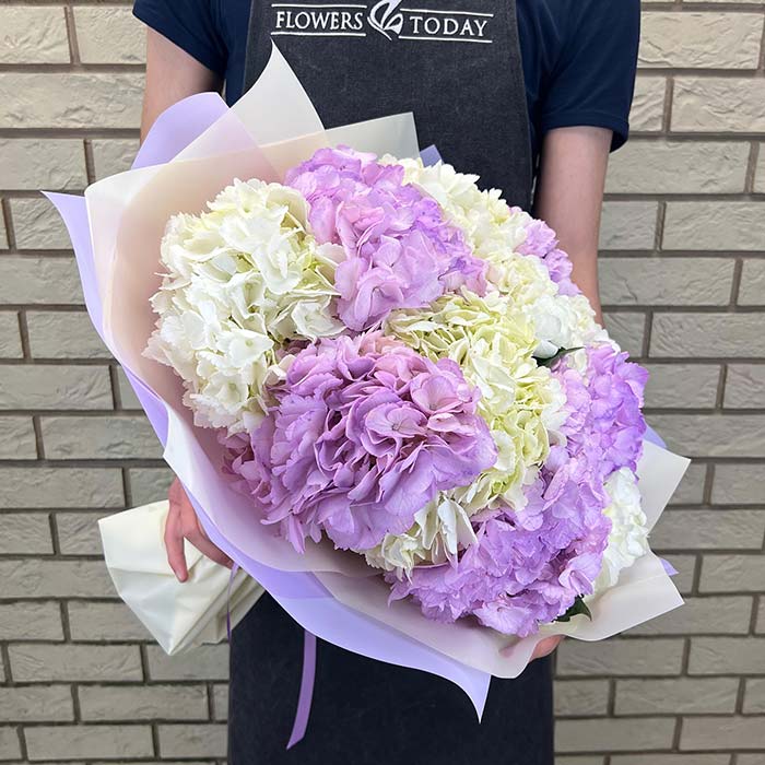Букет №7421 «Белые и фиолетовые гортензии»