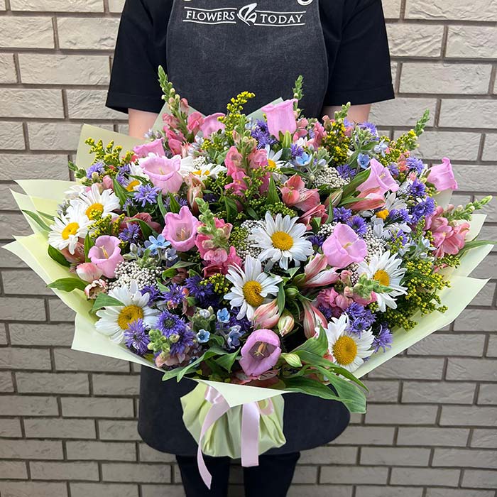 Букет №7464 «Летний из ромашек и других полевых цветов»