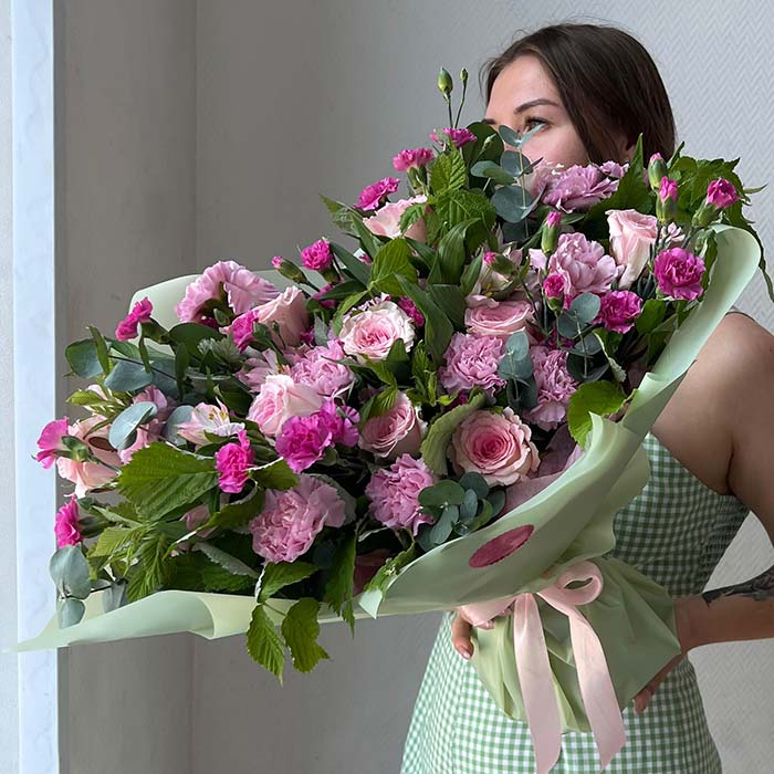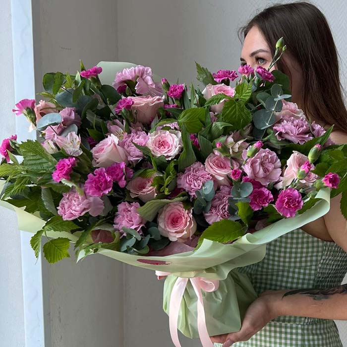 Букет №7478 «Розы, альстромерии, гвоздики»
