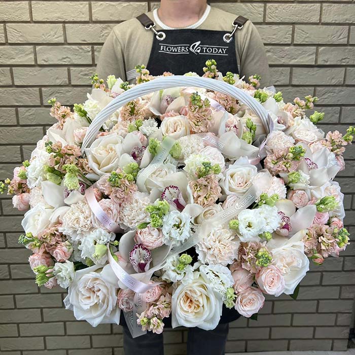 Букет №7564 «Пионовидные розы, маттиолы, орхидеи»
