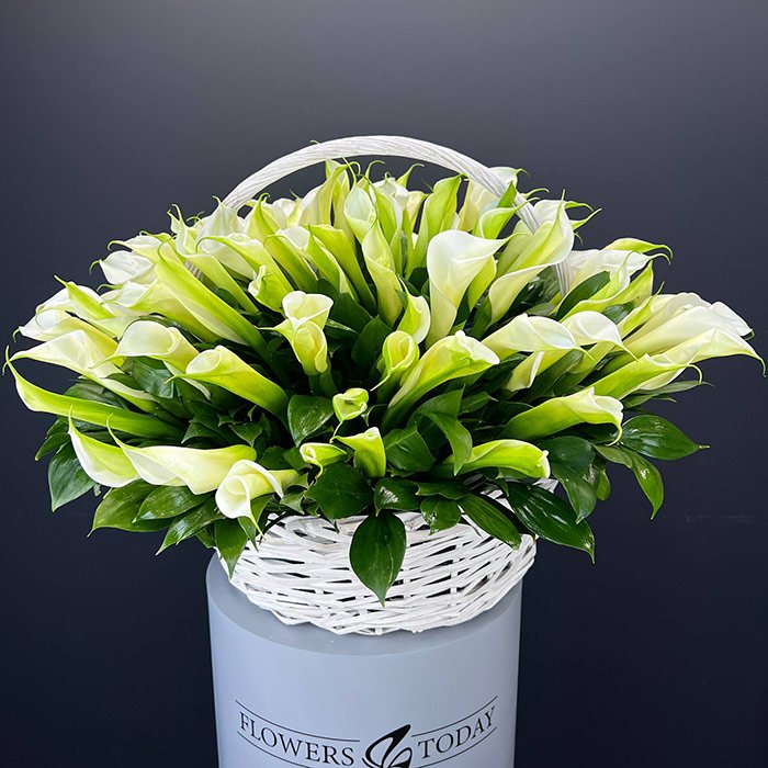 Букет №7646 «101 белая калла в корзине»