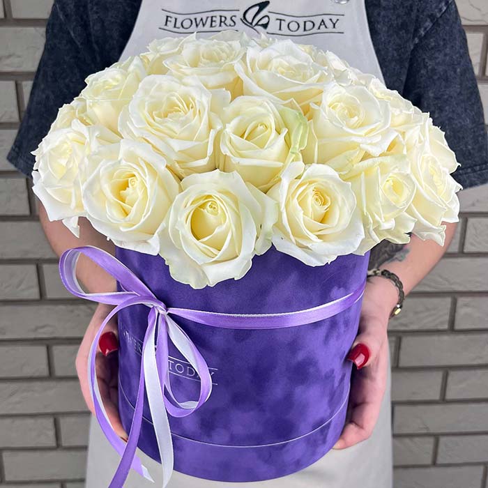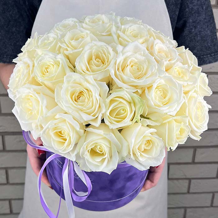Букет №942 «Белые розы в шляпной коробке»