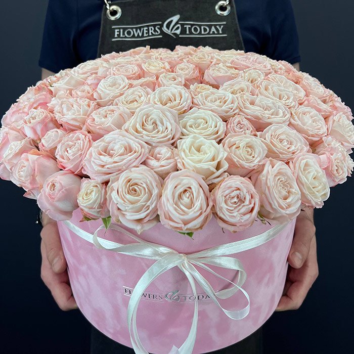 «Розовые пионовидные розы в коробке»