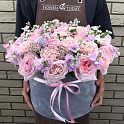 «Пионовидные розы, маттиола в коробке»