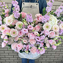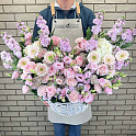 «Нежная корзина пионовидных роз, эустом и маттиол»