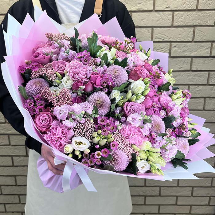 «Яркий букет из маттиол и разных роз»