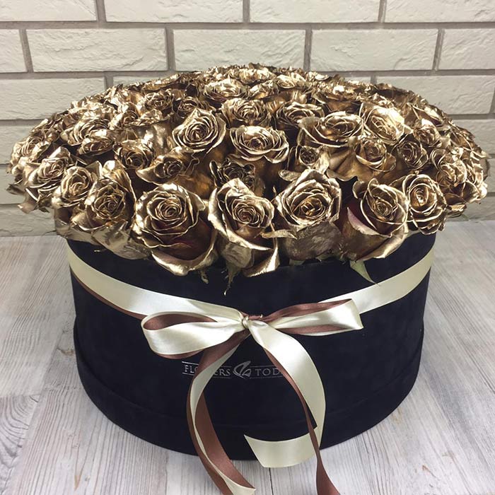 Букет №1254 «Золотые розы в коробке»