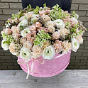Букет №1440 «Сирень, ранункулюсы, пионовидные розы в бархатной коробке»