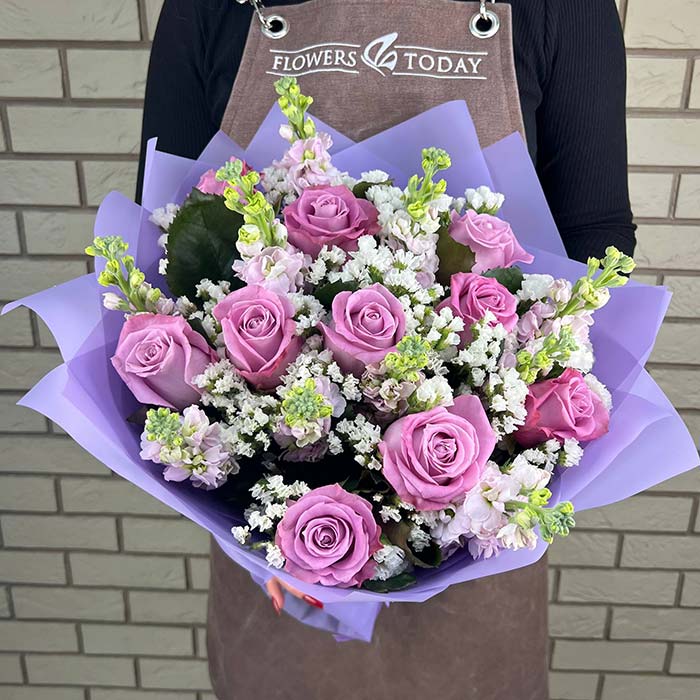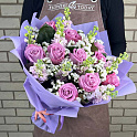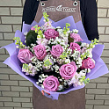 Букет №2073 «Розы, маттиолы, статицы»