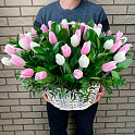 Букет №2400 «101 тюльпан с зеленью в корзине»