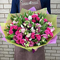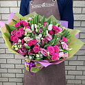 Букет №2599 «Эустомы, тюльпаны и розы»