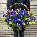 Букет №2611 «Тюльпаны и ирисы в корзине»