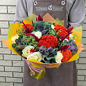 Букет №2740 «Розы, целозия, декоративная капуста»