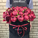 Букет №2760 «39 красных пионов в черной бархатной коробке»