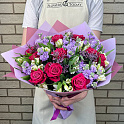 Букет №2776 «Розы, маттиола и альстромерия»