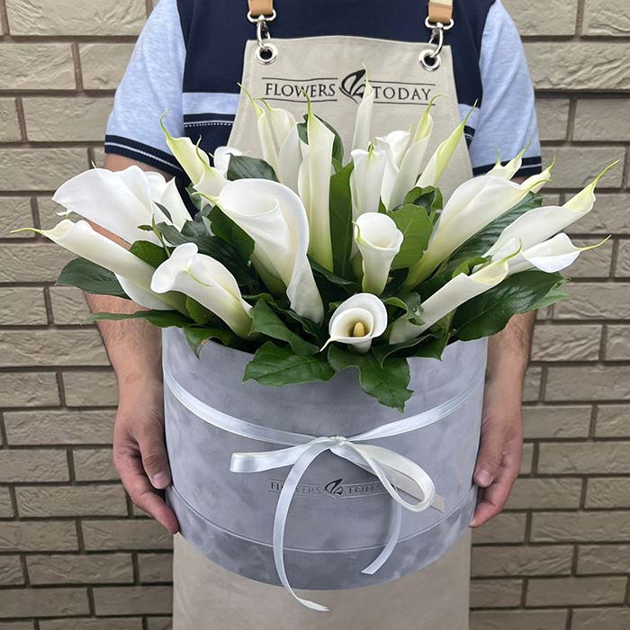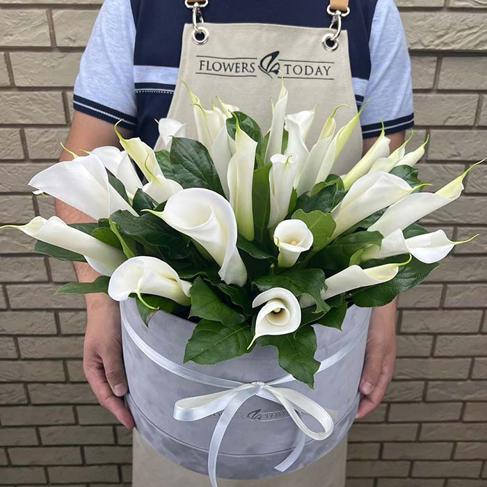 Букет №7215 «Белые каллы в коробке»