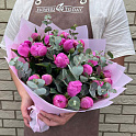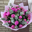 Букет №7241 «21 малиновый пион с эвкалиптом»