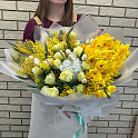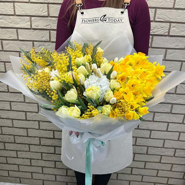 Букет №7382 «Нарциссы, мимозы и тюльпаны»