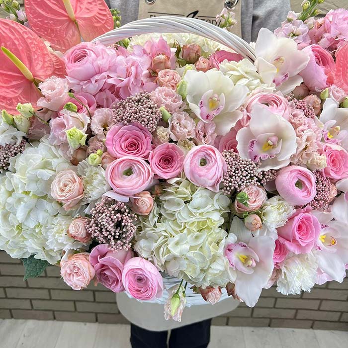 Букет №7391 «Антириумы, ранункулюсы, гортензии»