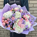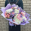 Букет №7399 «Гортензии, маттиола и пионовидные розы»