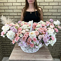 Букет №7411 «Пионовидные розы, маттиолы, гортензии»