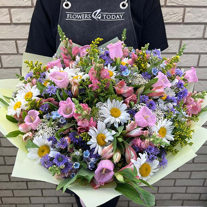 Букет №7464 «Летний из ромашек и других полевых цветов»