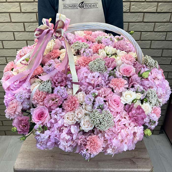 Букет №7520 «Гортензии, эустомы, розы, гвоздики»
