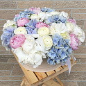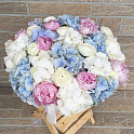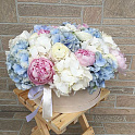 Букет №806 «Шляпная коробка с пионами и гортензиями»