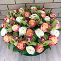 Букет №928 «Ранункулюсы, орхидеи и розы в коробке»