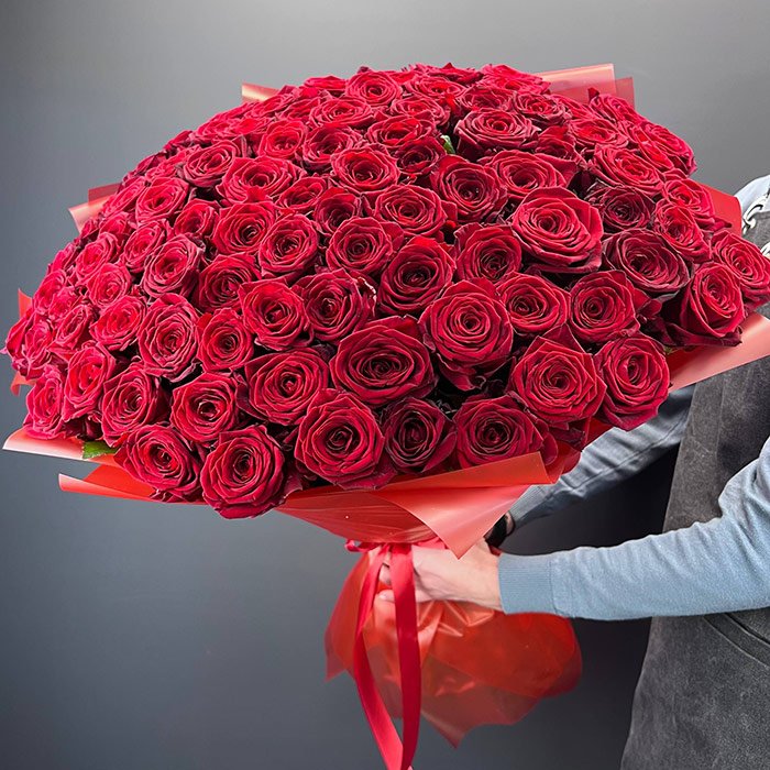 На фото букет из 101 розы