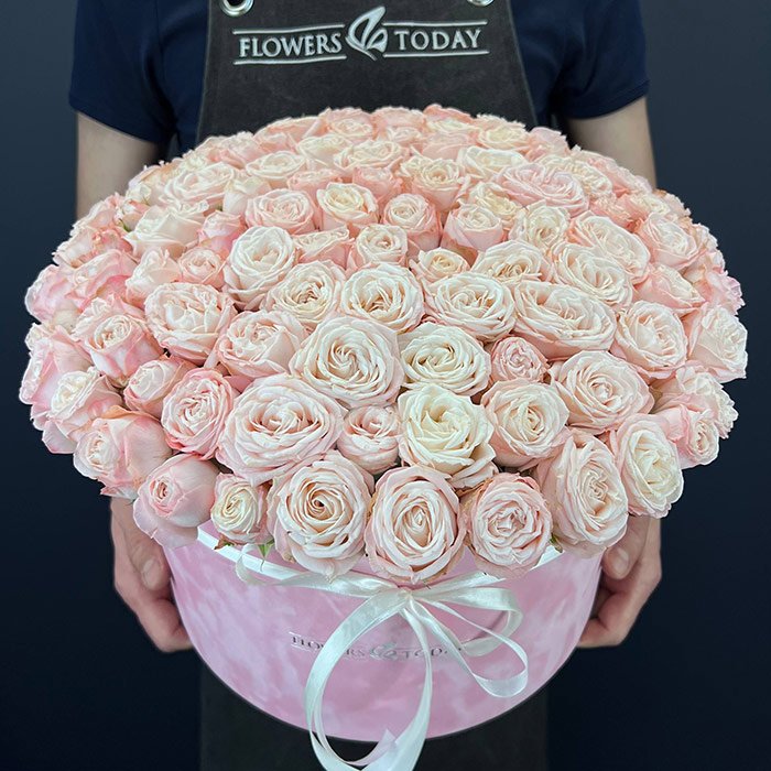«Розовые пионовидные розы в коробке»