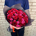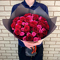 «29 роз микс, малиновые кустовые и красные одноголовые»