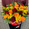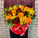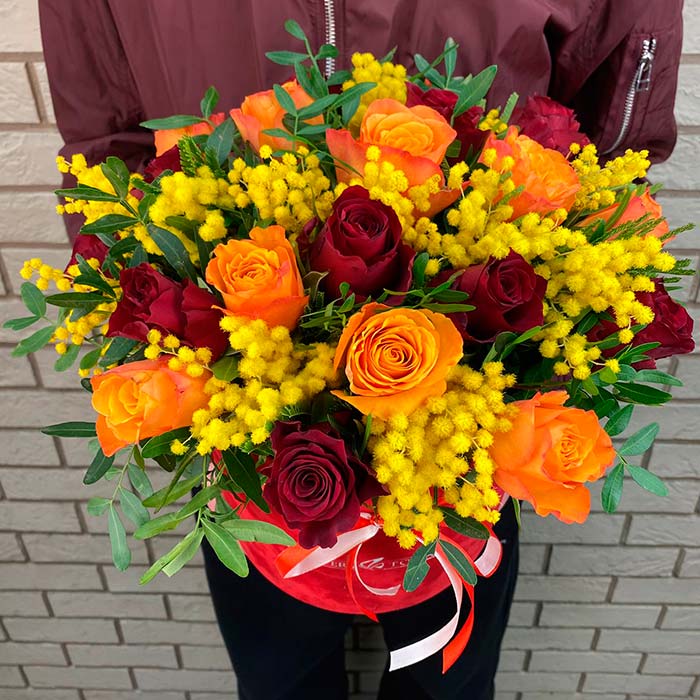 «Микс из роз с мимозой в коробке»