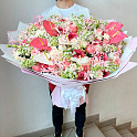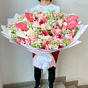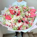 «Нежный букет из пионовидных роз, антуриумов, сирени, экзотики»